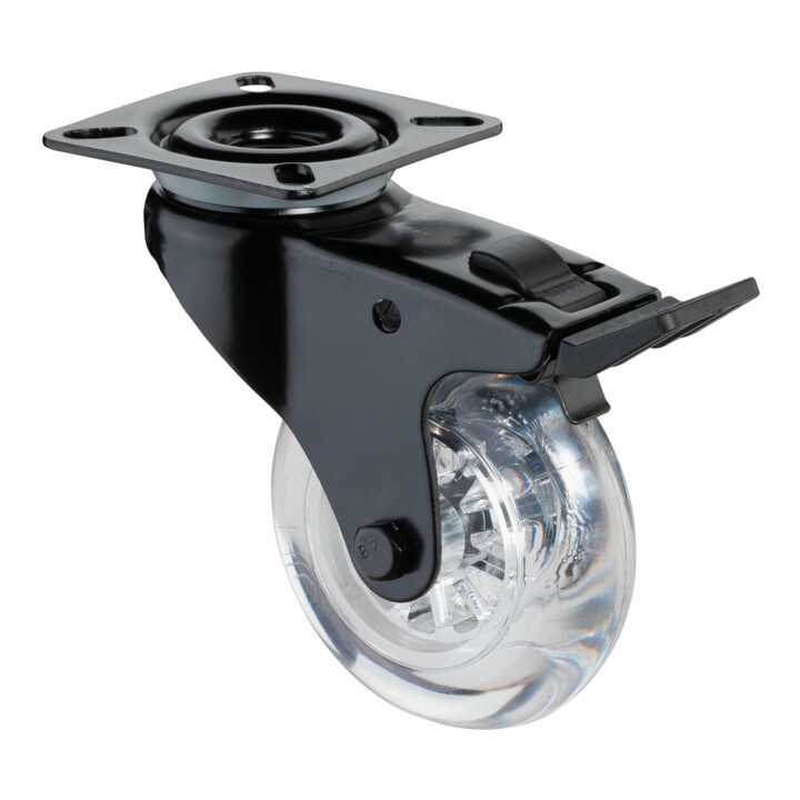 4 lenkbare Räder, davon 2 mit Totalfeststeller