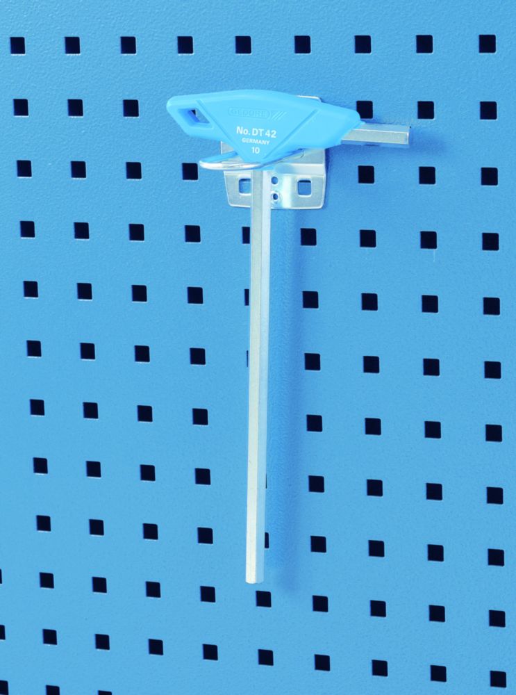 PRAKTISCH: Mit dem Werkzeughalter bringen Sie ganz einfach Ordnung in Ihre Werkstatt. Der Plastikhalter kann einfach an einer Lochblechtafel mit einer 10x38 mm Euro-Vierkantlochung befestigt werden.
