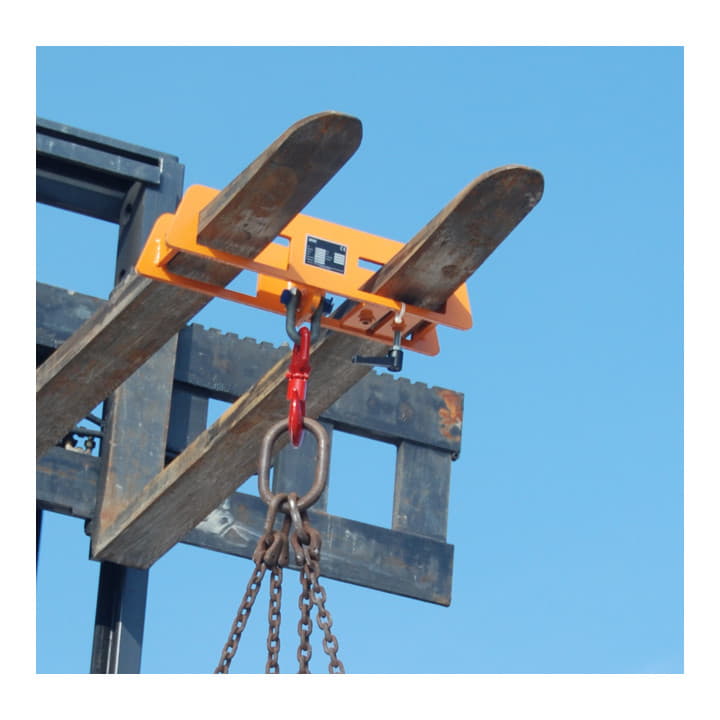 Traverse zum Auskippen von Baustoffbehältern mit Aufnahmezapfen