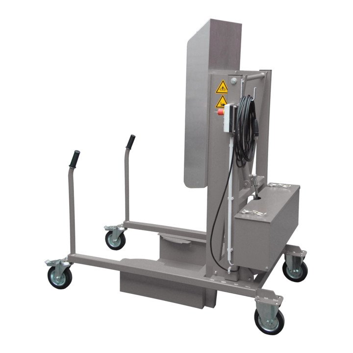 Dosierte Entleerung von Stahl-Spundfässern, Stahl-Deckelfässern, Rollreifenfässern, Kunststoff-L-Ringfässern, Kunststoff-Doppel-L-Ringfässern und Kunststoff-Deckelfässern von 110 bis 220 Liter Inhalt