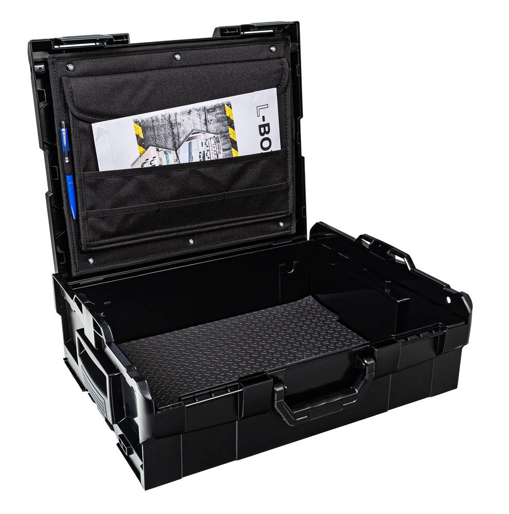 Die Dokumentenkarte LB/XLB ist die optimale Lösung für die geordnete Unterbringung von Stiften, Taschenrechner und Unterlagen bis Größe DIN A4. Dank ihrer praktischen Größe passt sie perfekt in den Deckel der L-BOXX, LS-BOXX oder der XL-BOXX. Die Befestigung erfolgt einfach und sicher durch Verschrauben.