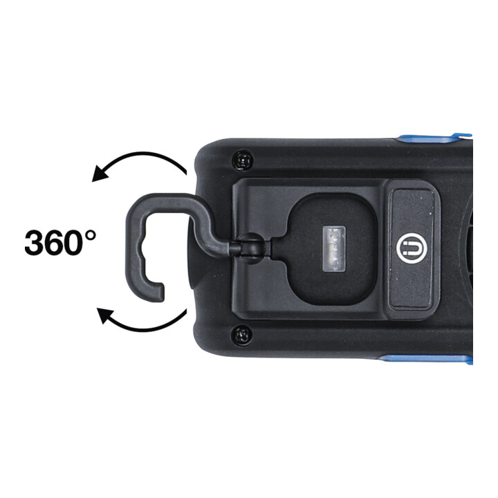 Standfeste und sichere Positionierung durch niedrigen Schwerpunkt|Feuchtigkeitsgeschütztes (IP 54) und stoßfestes Gehäuse mit praktischem Aufhängehaken|LED-Leuchte mit 2 einstellbaren Leuchtstufen und extrem starker Leuchtstärke bis zu 500 Lumen|Optimale Ausrichtung des Lichtstrahls durch 9-fach bzw. um 144° verstellbaren Lampenkopf|Akku und Ladegerät nicht im Lieferumfang enthalten|Hohe Laufzeit von 5 bzw. 10 Std. (je nach Leuchtstufe) bei Einsatz eines 4,0 Ah-Akkus