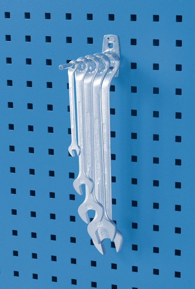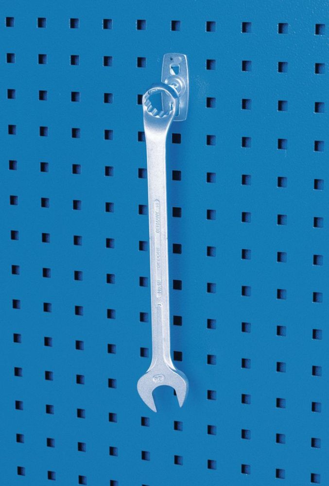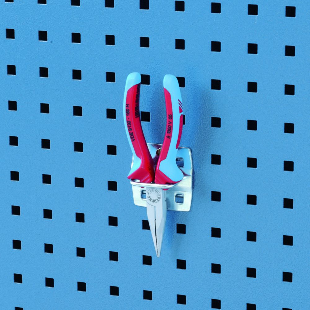 PRAKTISCH: Mit dem Werkzeughalter bringen Sie ganz einfach Ordnung in Ihre Werkstatt. Der Plastikhalter kann einfach an einer Lochblechtafel mit einer 10x38 mm Euro-Vierkantlochung befestigt werden.