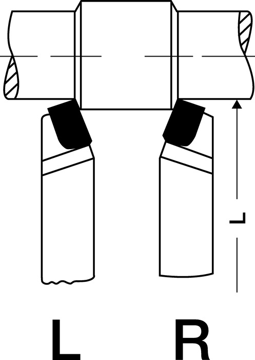 Nach außen abgestufte Bohrbacken, gehärtet.