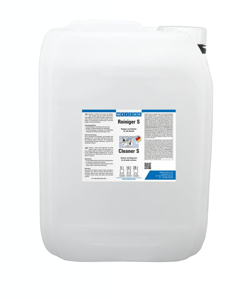 WEICON Reiniger S entfernt ölige und fettige Verschmutzungen von allen Metallen sowie von Keramik, Glas und den meisten Kunststoffen. Er kann jedoch die Oberfläche von Thermoplasten wie PVC, Plexiglas, Polystyrol und einfachen Lackschichten angreifen. WEICON Reiniger S verdunstet schnell und im Gegensatz zu herkömmlichen Verdünnern rückstandsfrei. Er kann zur Reinigung und Entfettung vor dem Grundieren und Lackieren, zur Reinigung von Maschinenteilen oder vor dem Auftragen anderer WEICON Produkte auf Oberflächen eingesetzt werden, wo ein fettiger Untergrund deren Wirkung beeinträchtigen würde. Auch für die Entfettung von Elektromotoren und stark beanspruchten elektronischen Geräten ist Reiniger S eine hervorragende Lösung.