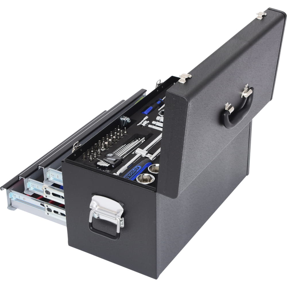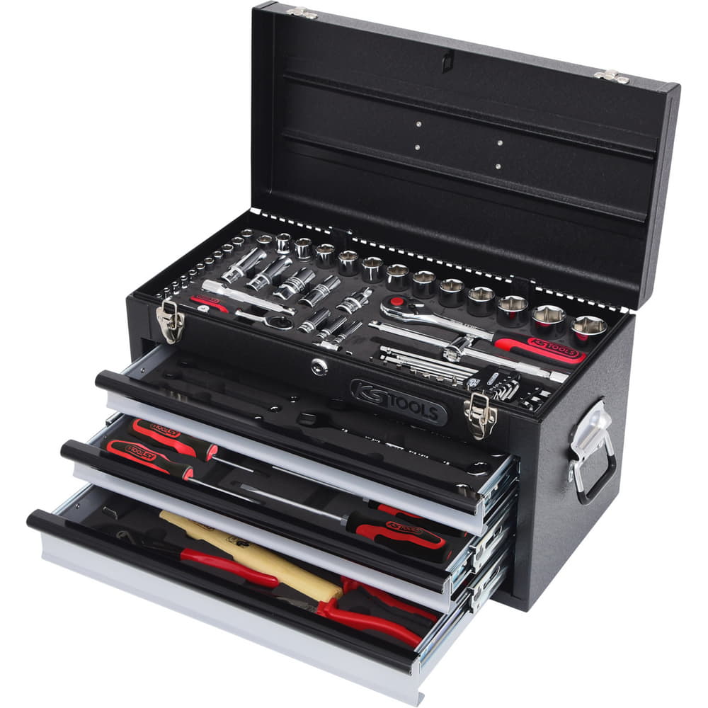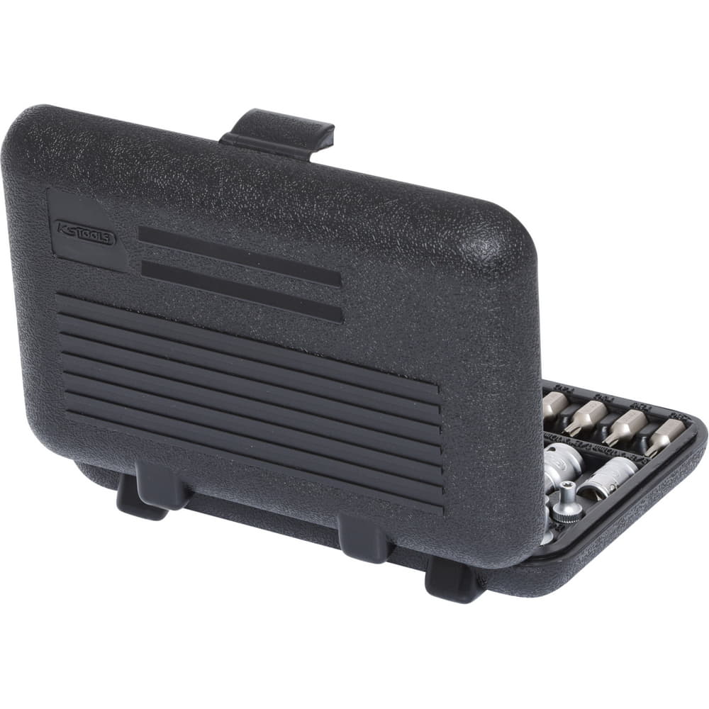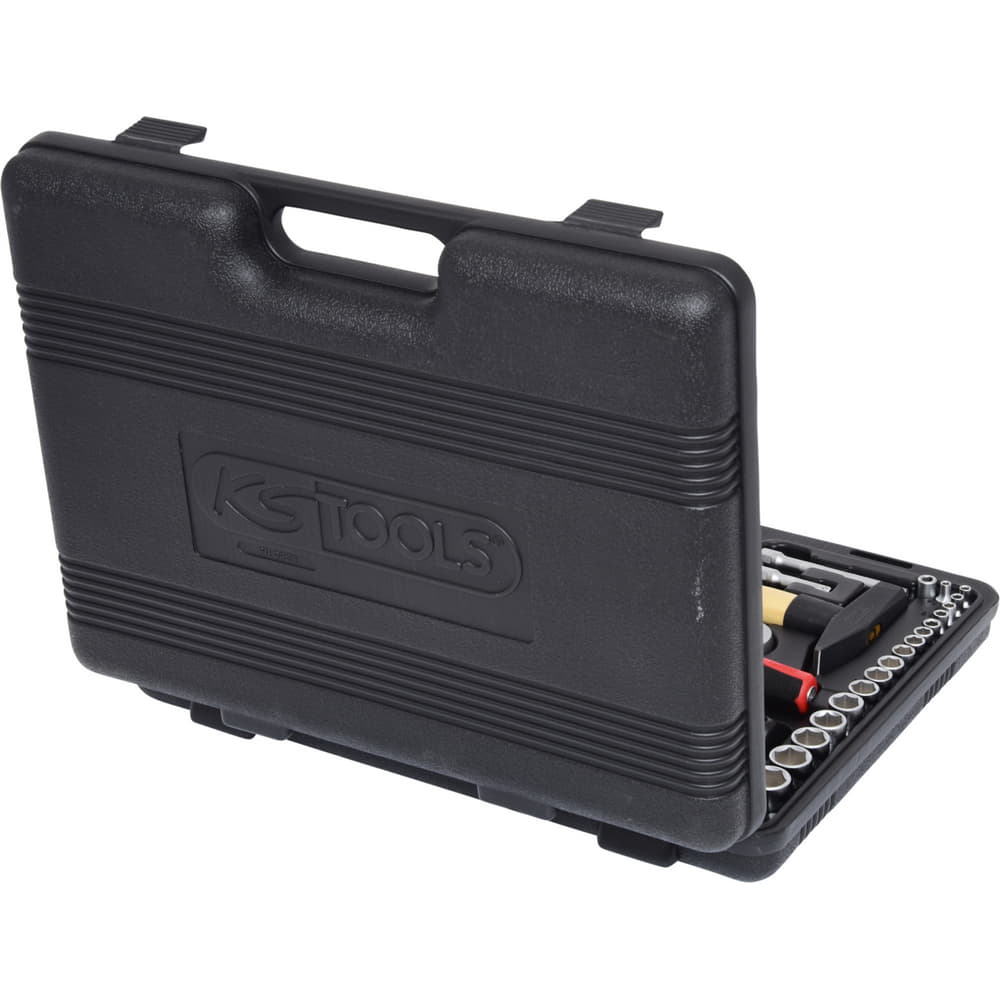Die Firma KS Tools bietet hier mit diesem 179 teiligen Steckschlüssel Satz eine breite Auswahl an verschiedenen Bits, Aufsätzen und Schlüsseln um diverse anfallenden Alltagsaufgaben lösen zu können. Die Werkzeuge sind aus rostfreiem Chrom Vanadium Stahl gefertigt, was eine hohe Stabilität und Langlebigkeit bedeutet. Die Werkzeuge lagern in einem gut sortierten und robusten Koffer um einen einfach Transport und Lagerung zu ermöglichen. KS Tools ist ein führender Hersteller für Handwerkzeuge aller Art und zeichnet sich vor allem durch seine lange Tradition und hohe Verarbeitungsqualität auszeichnet.