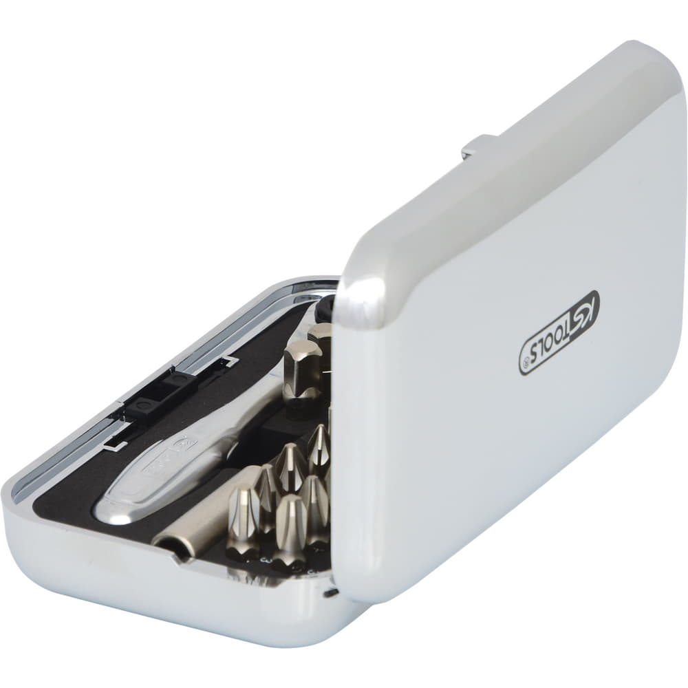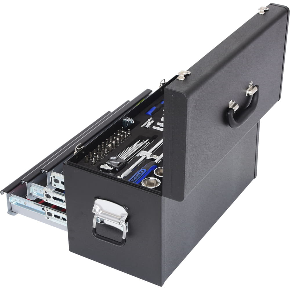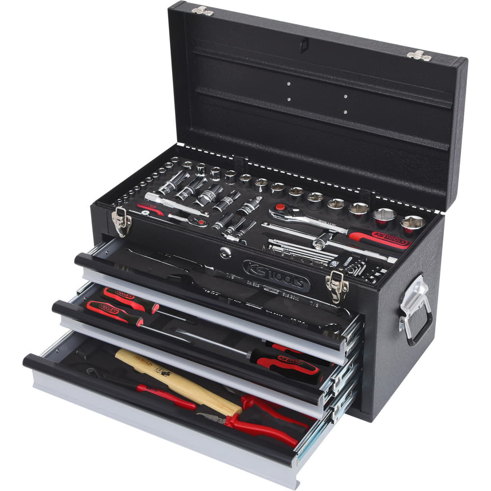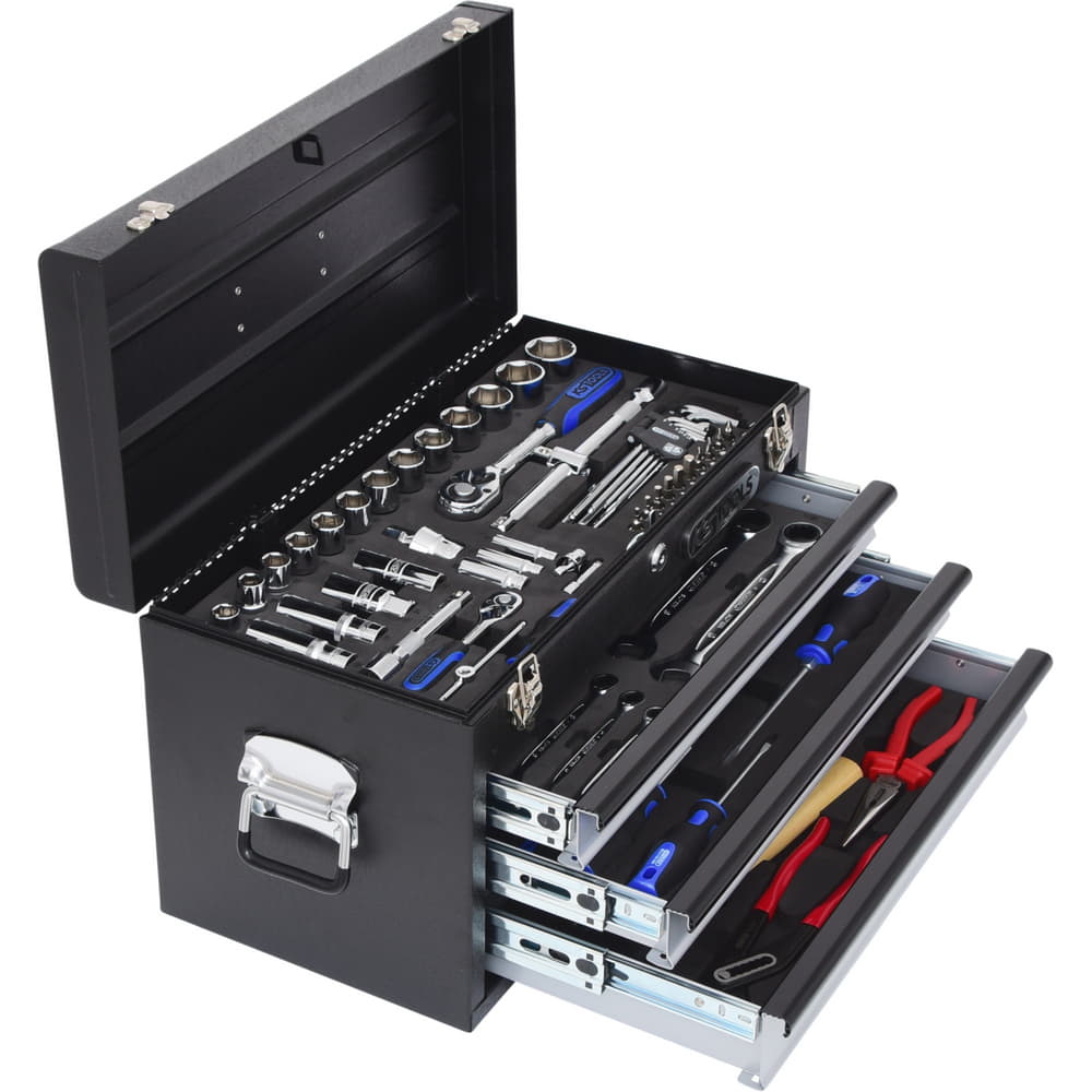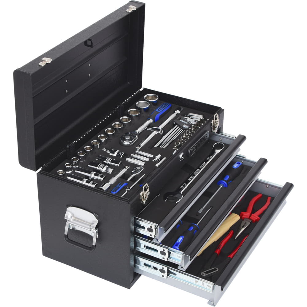 Die Firma KS Tools bietet hier mit diesem 179 teiligen Steckschlüssel Satz eine breite Auswahl an verschiedenen Bits, Aufsätzen und Schlüsseln um diverse anfallenden Alltagsaufgaben lösen zu können. Die Werkzeuge sind aus rostfreiem Chrom Vanadium Stahl gefertigt, was eine hohe Stabilität und Langlebigkeit bedeutet. Die Werkzeuge lagern in einem gut sortierten und robusten Koffer um einen einfach Transport und Lagerung zu ermöglichen. KS Tools ist ein führender Hersteller für Handwerkzeuge aller Art und zeichnet sich vor allem durch seine lange Tradition und hohe Verarbeitungsqualität auszeichnet.