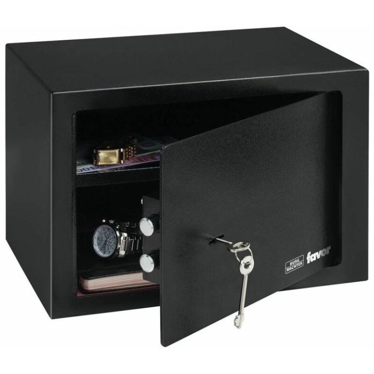 Burg-Wächter Möbelsafe FAVOR S5 K | Hersteller-Nr.: 35790 | EAN: 4003482357903 | • Sicheres Doppelbartschloss • Solider einwandiger Korpus • Mechanisches Notschloss • Möbeltresor FAVOR: besitzt einen soliden einwandigen Korpus • Sicheres Doppelbartschloss • Möglichkeit zur Rückwandverankerung Die Burg-Wächter Möbeltresore aus der Reihe Favor sind passend in Möbelstücke integrierbar. So sind Ihre Wertgegenstände und Dokumente gut versteckt und sicher vor Diebstahl geschützt. Egal ob zuhause oder im Büro - Schmuck, Dokumente und Wertsachen können hier sicher verstaut und dank des Fachbodens organisiert werden. Für den Notfall ist der Favor mit einem mechanischem Notschloss versehen. Egal ob am Schreibtisch, im Schrank oder andernorts in Ihren eigenen vier Wänden – dieser Tresor von BURG-WÄCHTER lässt sich stets mühelos anbringen. Die Handhabung erweist sich als bequem und einfach. Verankern Sie Ihren Tresor problemlos in der Wand. Mit den zwei Rückwandbohrungen sowie dem mitfgelieferten