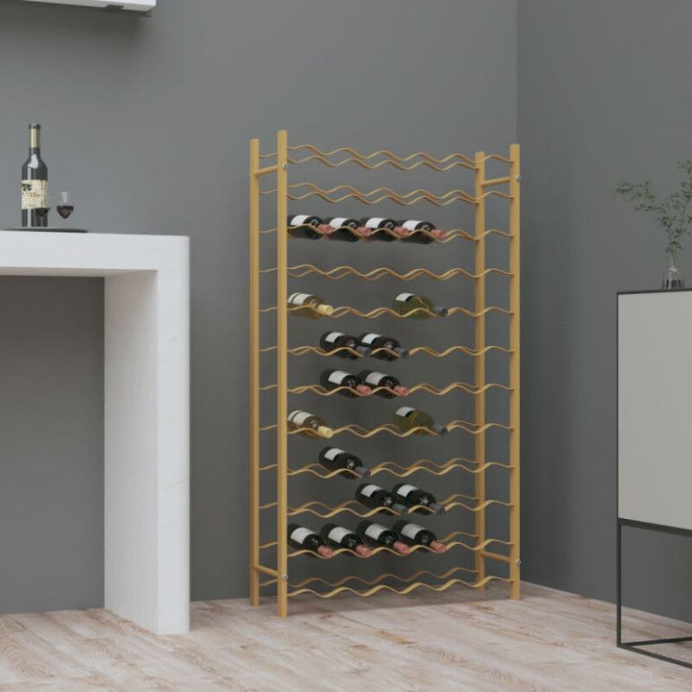 In diesem praktischen Weinregal lassen sich Ihre Lieblingsweine ordentlich aufbewahren. Reichlich Stauraum: Das Weinregal besitzt 12 Ebenen, auf denen bis zu 72 Flaschen Wein Platz finden. Jede Ebene kann 6 Flaschen aufnehmen.Modernes Design: Dieses Weinregal ist auch eine trendige Ergänzung zur Aufbewahrung von Wein in modernen Küchen, Speisekammern und Bars.Hohe Qualität: Das Flaschenregal besteht aus Metall, sodass es nicht rostet und sich nicht verformt. Darüber hinaus verhindert seine äußerst glatte Oberflächen Kratzer auf den Flaschen. Warnung:Um ein Umkippen zu verhindern, muss dieses Produkt mit der mitgelieferten Wandhalterung gesichert werden. Farbe: GoldenMaterial: MetallAbmessungen: 64 x 22 x 117 cm (B x T x H)Nimmt bis zu 72 Flaschen Wein auf (Flaschen nicht im Lieferumfang enthalten)Zusammenbau erforderlich: JaLegal Documents:Weitere Informationen, wie Sie Ihre Möbel vor dem Umkippen schützen können, finden Sie hier