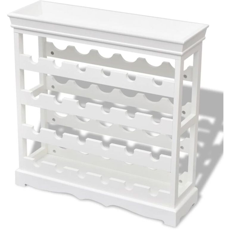 Dieses qualitativ hochwertige Weinregal in Weiß passt zu jeden Interieur und kann im Wohnzimmer, Esszimmer oder Flur platziert werden. Dieser offene Weinschrank bietet reichlich Stauraum für Weinflaschen. Die vier Regale können 24 Flaschen Wein halten. Die obere Ablage kann als Ablagefläche für Glaswaren, Flaschenöffner und andere Gegenstände verwendet werden. Dieses einfache, aber stilvolle Weinregal ist zweifellos ein Muss für alle Weinliebhaber. Farbe: Weiß Material: MDF und massives Tannenholz Gesamtmaße: 70 x 22,5 x 70,5 cm (L x B x H) WARNUNG: Um ein Umkippen zu vermeiden, muss es mit der mitgelieferten Halterung an der Wand gesichert werden. Legal Documents: Weitere Informationen, wie Sie Ihre Möbel vor dem Umkippen schützen können, finden Sie hier SKU: 242438