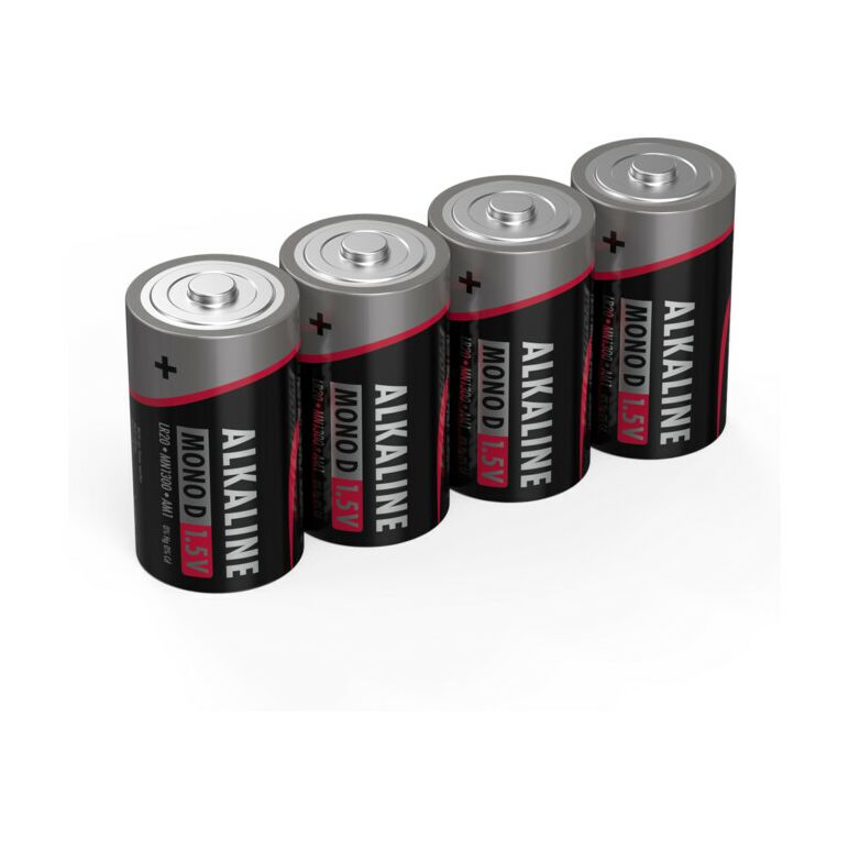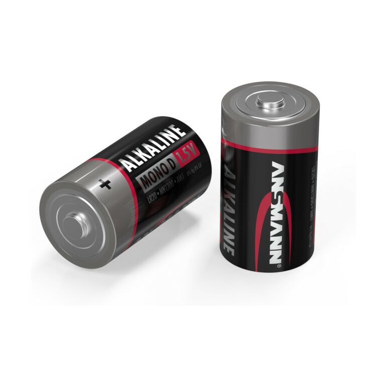 Alkaline-Batterie Mono D /LR20 /1,5 V - erstklassige Qualität mit langer HaltbarkeitEigenschaften:Markenqualität für den alltäglichen GebrauchMit einer langanhaltenden, präzisen Energieabgabe sind die Alkaline-Batterien die ideale Energiequelle für unterschiedlichste Alltagsgeräte mit durchschnittlichem Verbrauch. Dies umfasst elektrische Geräte wie Fernbedienungen, Taschenlampen, Wecker oder Wanduhren.Mit der Batterie haben Sie bei Stromausfällen oder in einem anderen Notfall immer eine unabhängige Stromversorgung zur Hand.Zuverlässig und langes HaltbarkeitsdatumDie Batterien der Red Line bieten Ihnen zuverlässige Leistung und eine lange Haltbarkeit (7 Jahre) bei einem sehr guten Preis-Leistungsverhältnis.Geprüfte QualitätANSMANN Batterien sind erfolgreich auf elektrische, thermische, geometrische und mechanische Anforderungen geprüft. Durch strenge Tests in Deutschland und Fernost können wir höchste Produktqualität gewährleisten. Unsere Qualitäts-Experten kontrollieren regelmäßig die Einhaltung unserer hohen Anforderungen sowie internationaler Standards.Lieferumfang:4 Alkaline Red Batterien Mono D /LR20