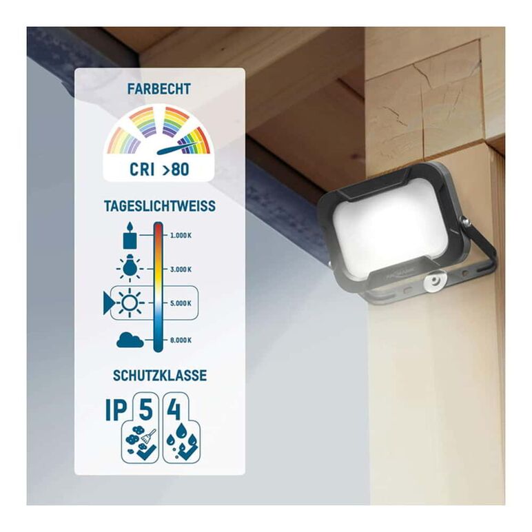 Robuster und kompakter ANSMANN Luminary LED-Wandstrahler mit 20 W, bis zu 1600 lm Eigenschaften:Deine Projekte, deine Leidenschaft, deine LeuchteANSMANN steht für Qualität und Zuverlässigkeit! Wir haben es uns zum Ziel gesetzt, hochwertige Qualitätsprodukte für Profis und Hobby-Handwerker anzubieten. Unser WFL1600 ist ein professioneller Strahler mit SMD-LED-Technologie. Die zuverlässige ANSMANN Luminary Leuchte bietet eine optimale Ausleuchtung rund ums Haus, z.B. in Werkstätten, Baustellen, Industrie, Haus, Holzhalle, Garten, Hof oder Garage.Leistungsstarke LeuchtkraftDurch den Einsatz der leistungsstarken SMD-LED-Technologie erzeugt die Leuchte ein intensives helles Licht. Die Leuchte kommt dabei auf eine Helligkeit bis zu 1.600 Lumen. Dank des breiten Abstrahlwinkels wird das helle Licht gleichmäßig verteilt. Die Farbtemperatur der LEDs beträgt ca. 5000K, welche die Augen nicht zu sehr belastet und ein angenehm natürliches, weißes Licht wiedergibt.Robust, stoßfest und spritzwassergeschütztDas robuste und stoßfeste Gehäuse ist widerstandsfähig gegen mechanische Beanspruchung. Dank IP54 ist die Leuchte vollständig gegen Fremdkörper (Staub), Berührungen und Strahlwasser aus jedem beliebigen Winkel geschützt. Somit können Sie sich bei optimaler Ausleuchtung voll auf Ihre Arbeit konzentrieren.Für Innen und AußenDas kurze integrierte H05RN-F Kabel dient zum festen und flexiblen Anschluß bei geringen mechanischen Beanspruchungen in trockenen, feuchten und nassen Räumen. Somit ist der Strahler ideal im Innen- und Außenbereich einsetzbar, da er den Belastungen jederzeit standhält!Sofort einsatzbereitDie SMD-LEDs benötigen unter 1 Sekunde Anlaufzeit, um die volle Leistung bereitzustellen. Somit liefert die Leuchte sofort die volle Leistung.Lieferumfang:WFL1600Bedienungsanleitung