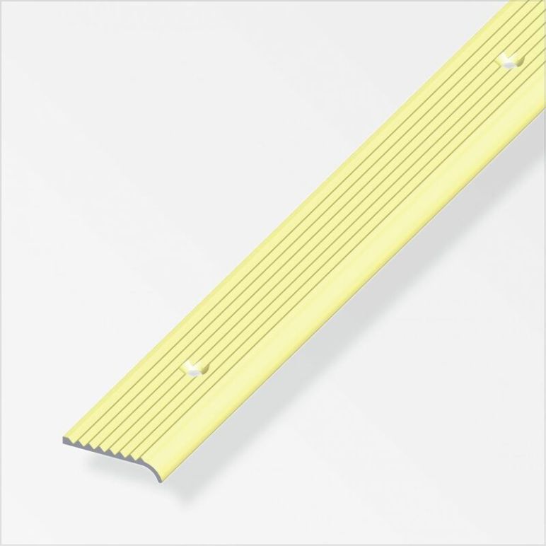 Länge: 2 MeterMaß A: 25 mm Maß B: 6 mm Material: AluminiumOberfläche: eloxiertEigenschaft: gelochtFarbe: messingArtikelart: Abschluss-ProfilGewicht: 0.182 kg