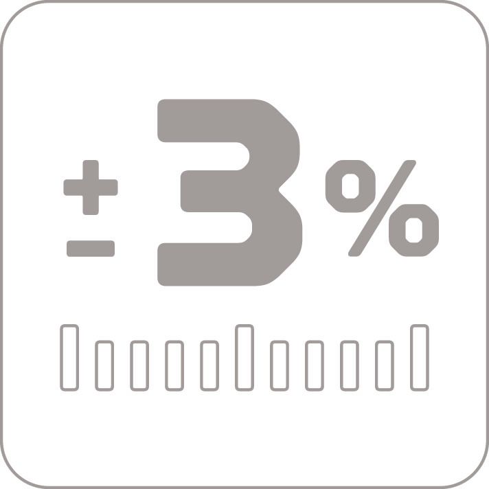 Garantierte Genauigkeit: besser als +/- 3 % Toleranz
