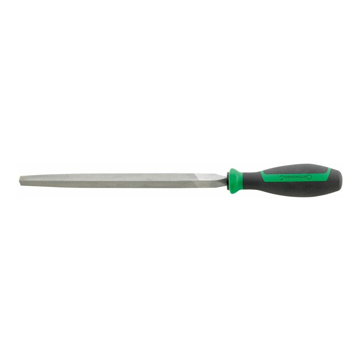 Hochwertig und stabil verarbeitete Feile aus Spezialstahl, 2-Komponenten-Griff mit ergonomischer Form für eine handschonende Kraftübertragung