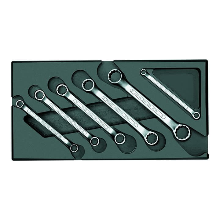 VIELSEITIG VERWENDBAR: Das Set umfasst insgesamt acht Doppelringschlüssel mit je zwei verschiedenen Schlüsselweiten von 6 mm bis hin zu 22 mm.