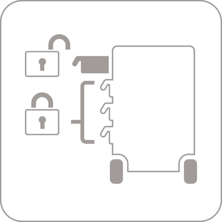 Sicherheitsverriegelung je Schublade, Einhandbedienung