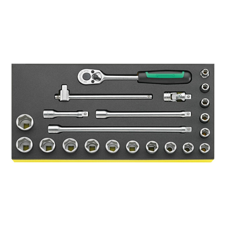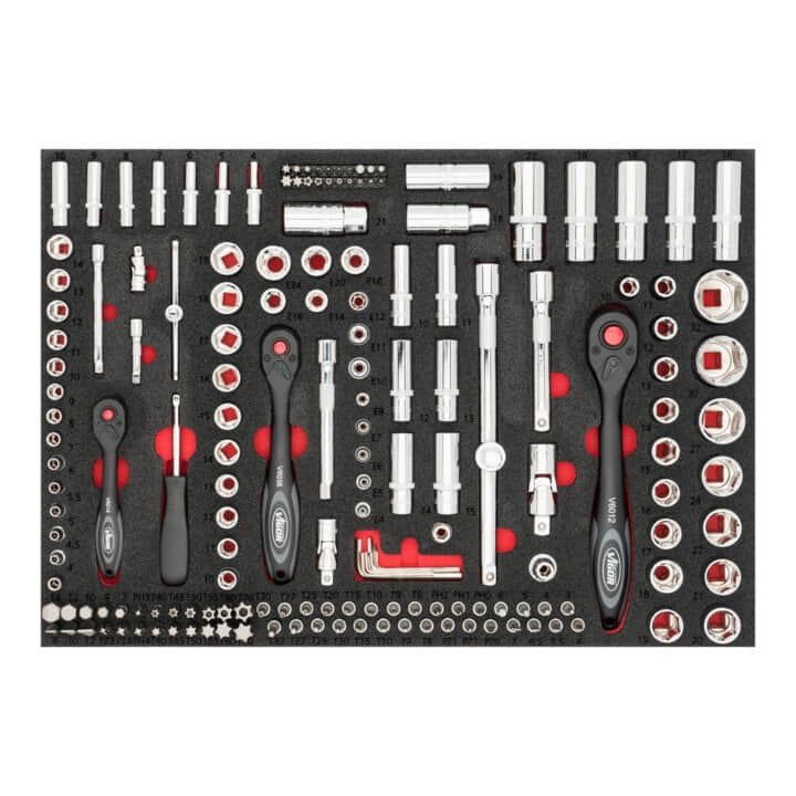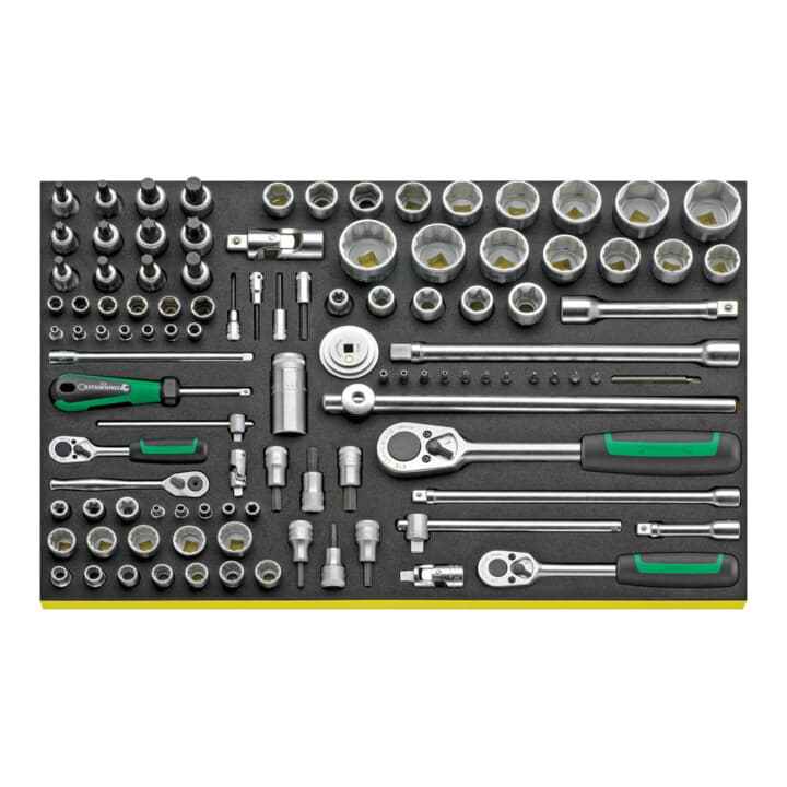 Die Firma KS Tools bietet hier mit diesem 179 teiligen Steckschlüssel Satz eine breite Auswahl an verschiedenen Bits, Aufsätzen und Schlüsseln um diverse anfallenden Alltagsaufgaben lösen zu können. Die Werkzeuge sind aus rostfreiem Chrom Vanadium Stahl gefertigt, was eine hohe Stabilität und Langlebigkeit bedeutet. Die Werkzeuge lagern in einem gut sortierten und robusten Koffer um einen einfach Transport und Lagerung zu ermöglichen. KS Tools ist ein führender Hersteller für Handwerkzeuge aller Art und zeichnet sich vor allem durch seine lange Tradition und hohe Verarbeitungsqualität auszeichnet.