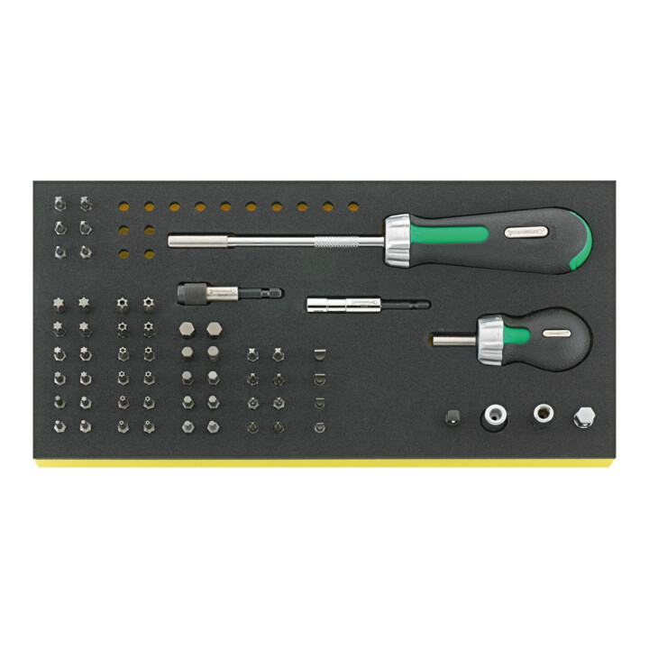 Die Firma KS Tools bietet hier mit diesem 149 teiliges Werkzeugset eine breite Auswahl an verschiedenen Bits, Ratschen, Schlüsseln und anderen Werkzeugen um alle anfallenden Alltagsaufgaben lösen zu können. Die Werkzeuge sind aus rostfreiem Chrom Vanadium Stahl gefertigt, was eine hohe Stabilität und Langlebigkeit bedeutet. Die Werkzeuge lagern in einem gut sortierten und robusten Koffer um einen einfach Transport und Lagerung zu ermöglichen. KS Tools ist ein führender Hersteller für Handwerkzeuge aller Art und zeichnet sich vor allem durch seine lange Tradition und hohe Verarbeitungsqualität auszeichnet.