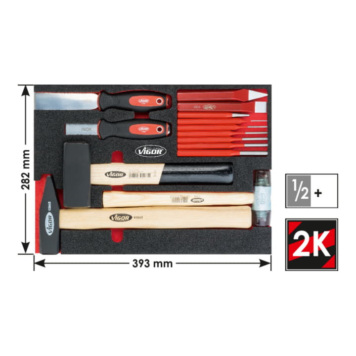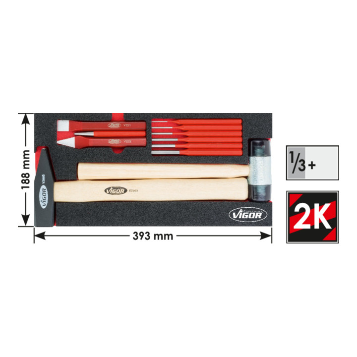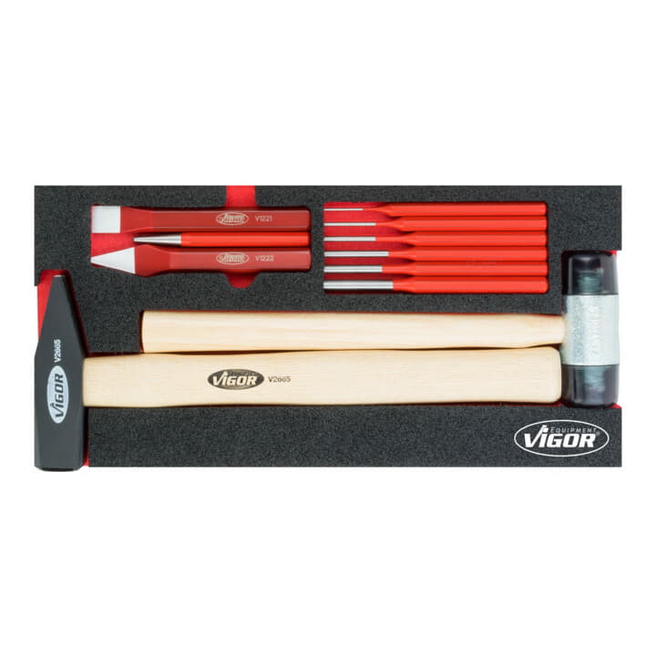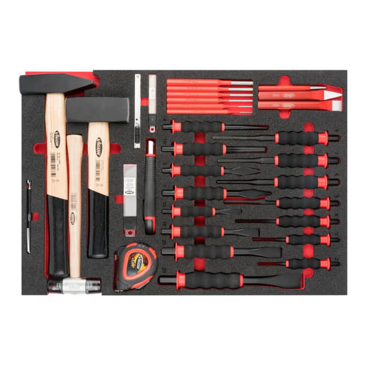 - 1x Durchtreiber-, Meißel- und Körner-Satz, 5 tlg