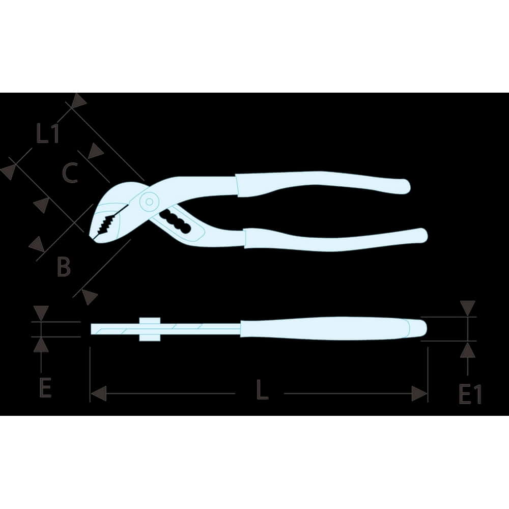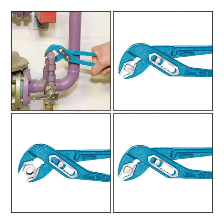 VERSTELLBARE UNIVERSALZANGE: Die Weite ist 7-fach verstellbar und kann so den individuellen Bedürfnissen angepasst werden. Dank schmaler Backen sind auch schwer zugängliche Stellen erreichbar.