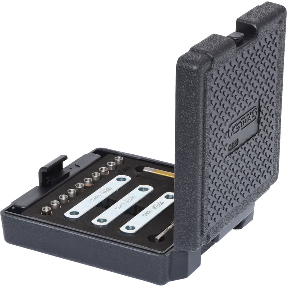 Die Gewindeadapter ermöglichen z. B. ein Abziehen von Gewindedeckeln, die ein Gewindeloch aufweisen