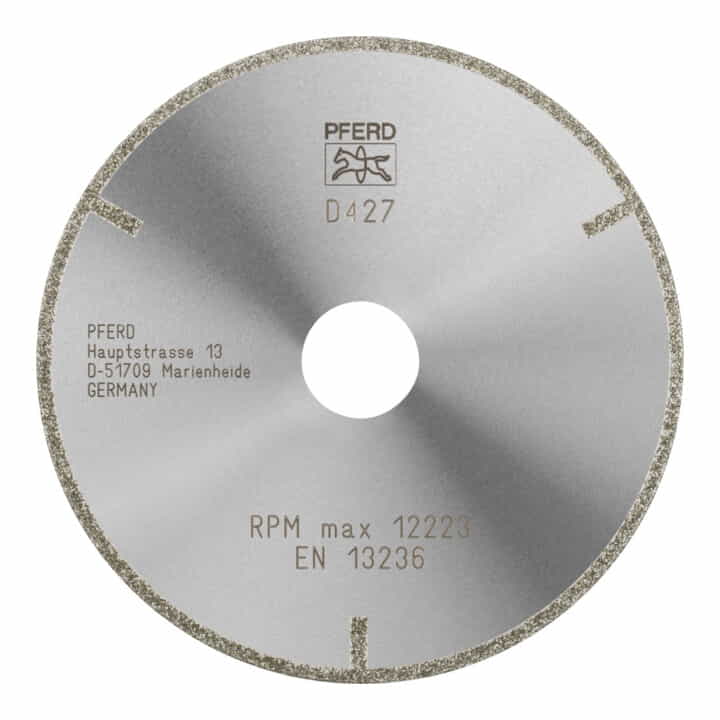 Die Metabo DIA TS SP Diamanttrennscheibe Universal ist perfekt geeignet für den Einsatz allgemeiner Baumaterialien, wie Beton, Waschbeton, harte Sandsteine und Tonziegel. Die Trennscheibe besitzt gesinterte Diamantsegmente, dass erhöht die Haltbarkeit und Standzeit. Die Segmenthöhe beträgt 7 mm und die maximal Drehzahl 12200 / min. Dank der 22,23 mm Bohrung ( Aufnahme ) und dem 125 mm Durchmesser ist die Trennscheibe mit vielen Winkelschleifern kompatibel.
