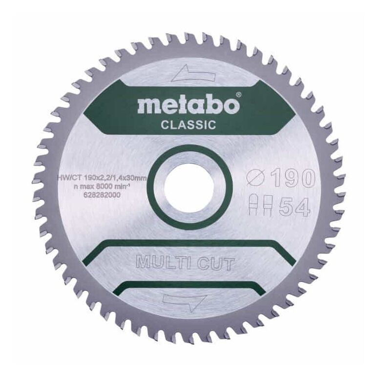 Metabo Sägeblatt multi cut - classic, 190x2,2/1,4x30 Z54 FZ/TZ 5° /B