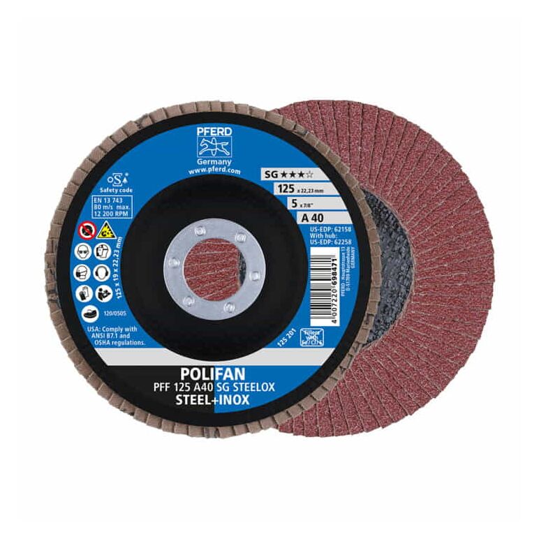 PFERD 67604185PFF 180A 40 SG STEELOX Fächerschleifscheibe Durchmesser 180mm Bohrungs-Ø 22.23mm Ede