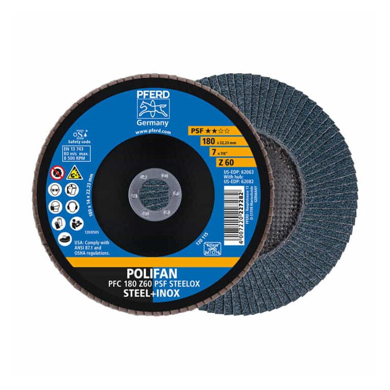 PFERD 67766185PFC 180 Z 60 PSF STEELOX Fächerschleifscheibe Durchmesser 180mm Bohrungs-Ø 22.23mm E