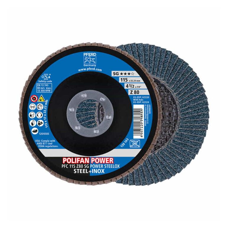 - Die Fächerscheibe POLIFAN Z SG POWER überzeugt durch eine aggressive Zerspanungsleistung und herausragende Standzeit, wodurch sie höchste Wirtschaftlichkeit erzielt