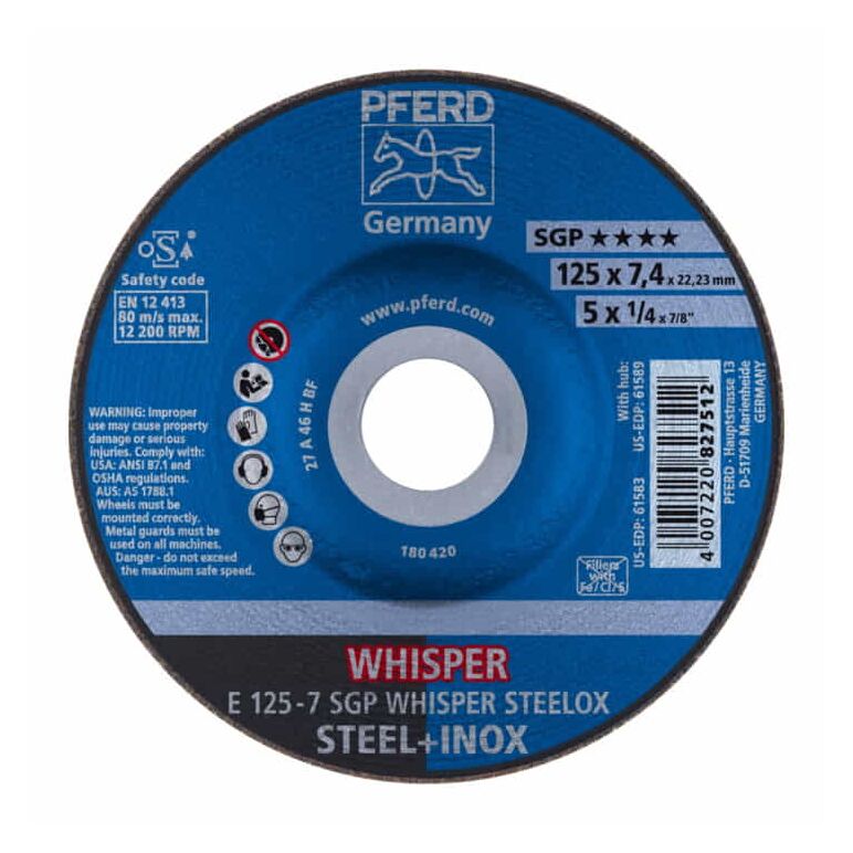 PFERD 62212848 E 125-7 SGP WHISPER STEELOX Schruppscheibe gekröpft Durchmesser 125mm Bohrungs-Ø 22