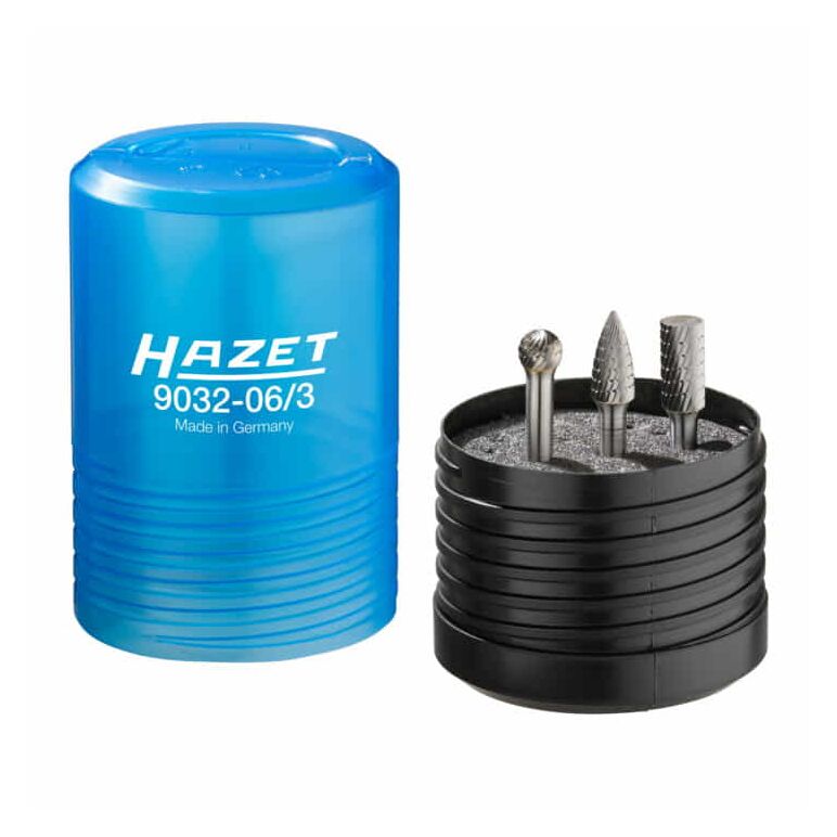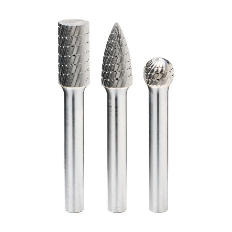 - Satz mit 3 verschiedenen Fräsern in Zylinder-, Kegel- und Kugelform