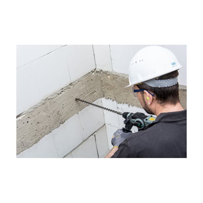 - Eingelassener Hartmetallkopf sorgt für äußerste Widerstandsfähigkeit in Beton und Armierung