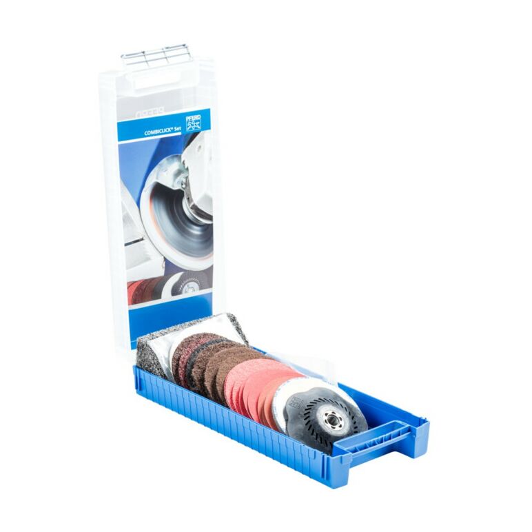 PFERD 49350071 COMBICLICK Set 19-tlg. Ø 115 mm M14 Bearbeitungen grob bis poliert für Winkelschleifer Durchmesser 115 mm