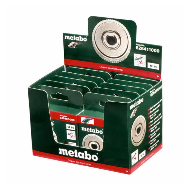 - Für alle Winkelschleifer; passend auch für andere Fabrikate (erforderliche freie Spindellänge mind. 8 mm); erforderlicher Gewindeanschluss M 14; werkzeugloser Scheibenwechsel; 10 Stück im attraktiven Thekendisplay