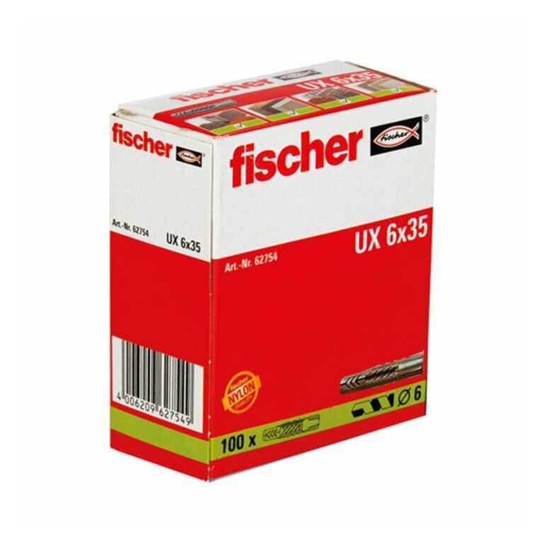100x Universaldübel ux 6 x 35 mm ohne Rand - 062754 - Fischer