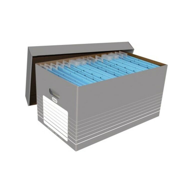 Zur Archivierung und zum Transport von Hängeregistraturen oder Ordnern. Flachliegend verpackt. Eingestanzte Tragegriffe vorn und hinten.