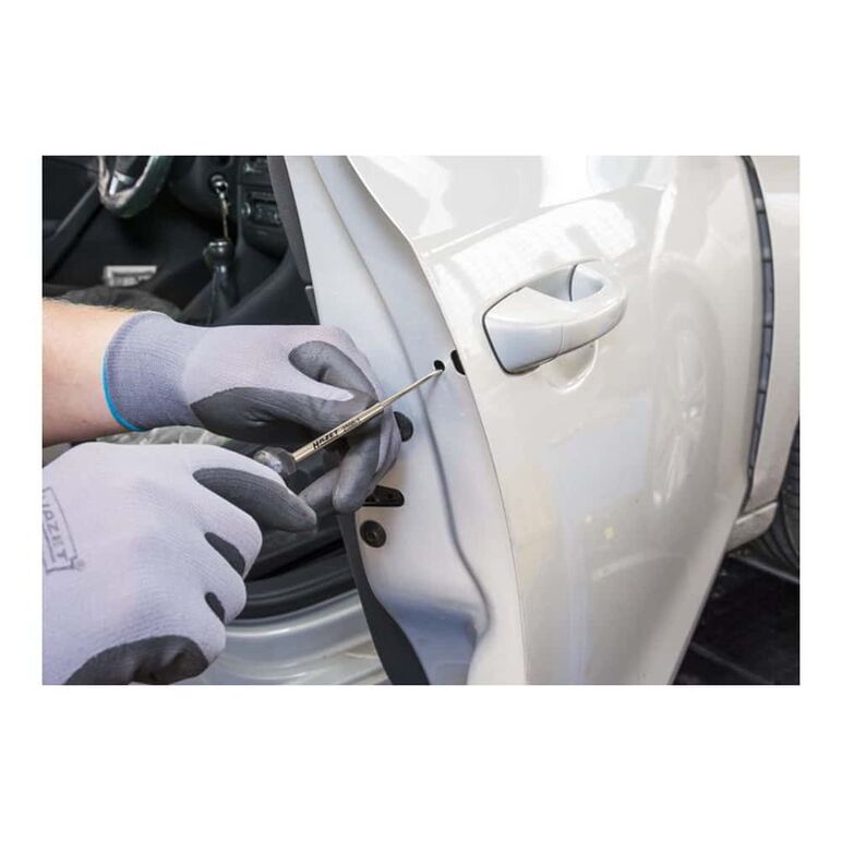 Eigenschaften:Anwendung:Betätigung des schwer erreichbaren Verriegelungshakens (Lagerbügel) beim Aus- / Einbau des TürgriffsSicheres und schnelles ArbeitenDemontage und Montage des Schließzylindergehäuses (Türgriff) bei Türen ohne SchließzylinderFür z.B. VW Passat Bj. 2005 → Tiguan Bj. 2008 → Golf 6 Bj. 2008 → Golf 7 Bj. 2012 → Amarok Bj. 2010 → Beetle Bj. 2011 →Zur Montage des Türschlosses VW Fox Bj. 2005 →Ergonomischer 1-Komponenten-trinamic-GriffMade In GermanyGesamtlänge: 256 mmLänge l1: 155 mm