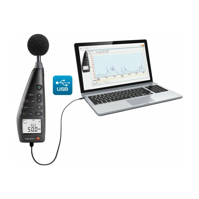 Eigenschaften:Das Schallpegelmessgerät testo 816-1 erfüllt mit seiner Top-Ausstattung alle Anforderungen an die normkonforme Schallpegelmessung nach IEC 61672-1 der Klasse 2 und ANSI S1.4 Typ 2Damit eignet es sich optimal für die Lärmmessung an Arbeitsplätzen und öffentlichen Orten oder auch in der Industrie und FertigungIm Vergleich zum Schallpegelmessgerät testo 816 verfügt das testo 816-1 zusätzlich über einen internen Datenlogger für 31 000 Messwerte und wird zudem inklusive PC-Software geliefertDas Schallpegelmessgerät für Profis: messen, speichern, auswertenEbenso wie das Schallpegelmessgerät testo 816 erhalten Sie auch das testo 816-1 in einer praktischen Transporttasche und können von den vielen technischen Features für die professionelle Lärmmessung rund um Arbeitsschutz und Immissionsschutz profitieren: Sie können die Messzeit - je nach Anforderung - von Slow (Messung einmal pro Sekunde) auf Fast (Messung alle 125 Millisekunden) umstellenAußerdem haben Sie die Auswahl zwischen zwei Frequenzbewertungen: Kennlinie A entspricht dem Schalldruckempfinden des menschlichen Ohrs, Kennlinie C bewertet die niederfrequenten Anteile eines GeräuschesZudem können Sie das Schallpegelmessgerät testo 816-1 mit Hilfe des optional erhältlichen Schallkalibrators und des mitgelieferten Schraubendrehers direkt vor Ort nachkalibrierenDie Messwerte sind auf dem beleuchteten Display auch bei schlechten Sichtverhältnissen gut ablesbarDas Schallpegelmessgerät testo 816-1 leistet noch mehr: Es verfügt über einen internen Datenlogger und kann bis zu 31 000 Messwerte direkt im Gerät speichernMit dem mitgelieferten USB-Verbindungskabel können Sie die Messdaten ganz einfach auf einen PC übertragenDie ebenfalls im Lieferumfang enthaltene PC-Software unterstützt Sie bei der Datenverwaltung und -auswertungObendrein ermöglicht die Software auch Langzeitmessungen, bei der die aktuellen Messdaten direkt am PC verfolgt werden könnenDazu muss das Schallpegelmessgerät mit dem PC verbunden werdenDie Anwendungsbereiche für das Schallpegelmessgerät testo 816-1Zum Arbeitsschutz gehört, dass die Lärmbelästigung am Arbeitsplatz unter einem gewissen Dezibel-Wert bleibtAuch an öffentlichen Orten ist die Lärmbelästigung Thema, denn Verkehr und Veranstaltungen dürfen Anwohner nicht in größerem Maße negativ beeinflussenDas Schallpegelmessgerät testo 816-1 eignet sich sowohl für die Lärmmessung am Arbeitsplatz als auch für die Messung an öffentlichen Orten, denn es ermöglicht sowohl präzise punktuelle Messungen als auch Langzeitbeurteilungen.Lieferumfang:Schallpegelmessgerät testo 816-1gemäß IEC 61672-1 Klasse 2 und ANSI S1.4 Typ 2Inklusive TransporttascheWindschutzPC-Software und USB-VerbindungskabelSchraubendreher zur KalibrierungBatterien und Bedienungsanleitung auf CD-ROM.