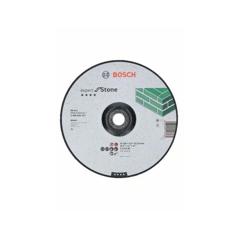 Die Trennscheibe Expert for Stone kombiniert enorme Trennleistung in Stein mit maximaler Sicherheit. Die Scheibe besteht aus hochwertigem Siliziumkarbid und Harz speziell für perfekte Ergebnisse in Stein entwickelt. Das präzisionsgefertigte Glasfasergewebe der Scheibe sorgt für hohe Stabilität und Sicherheit beim Schneiden. Verwenden Sie diese Scheibe zum Schneiden von Stein. Für Winkelschleifer. Trennscheiben von Bosch erfüllen die höchsten Sicherheitsanforderungen wie EN 12413, FEPA und oSa. Spezifikation: C 24 R BF, Durchmesser mm: 180, Bohrungsdurchmesser mm: 22,23, Dicke mm: 3,0.