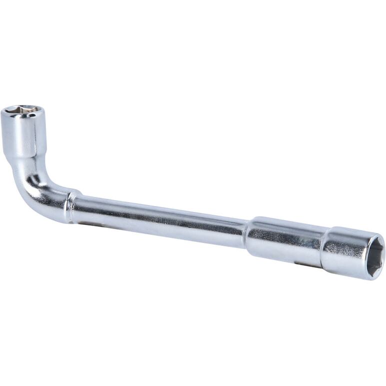 Der BRILLIANT TOOLS Doppel-Steckschlüssel BT015010 wird aus Chrom Vanadium Stahl im Gesenk geschmiedet und anschließend gehärtet. Der metrische Doppel-Steckschlüssel ist auf einer Seite um 90° gekröpft, um auch tiefer liegende Schraubfälle spielend leicht zu lösen. Die Oberfläche ist für einen verbesserten Rostschutz verchromt und nach DIN 838 gefertigt, dadurch sitzt er auch besonders gut in der Hand. Besonders geeignet ist dieser Schlüssel für Stehbolzen und tiefliegende Muttern. Die kurze Seite ist gebohrt zum Einstecken von Drehstiften.