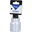 Die BRILLIANT TOOLS Sechskant-Stecknuss BT025934 ist nach DIN 3124 gefertigt. Der kurze metrische Einsatz hat einen 3/4" (20 mm) Innenvierkant-Antrieb, welcher nach DIN 3120 gefertigt wurde. Die Schlüsselweite des Sechskants ist 34 mm. Die Stecknuss hat eine Gesamtlänge von 55 mm. Die Oberfläche ist matt verchromt.