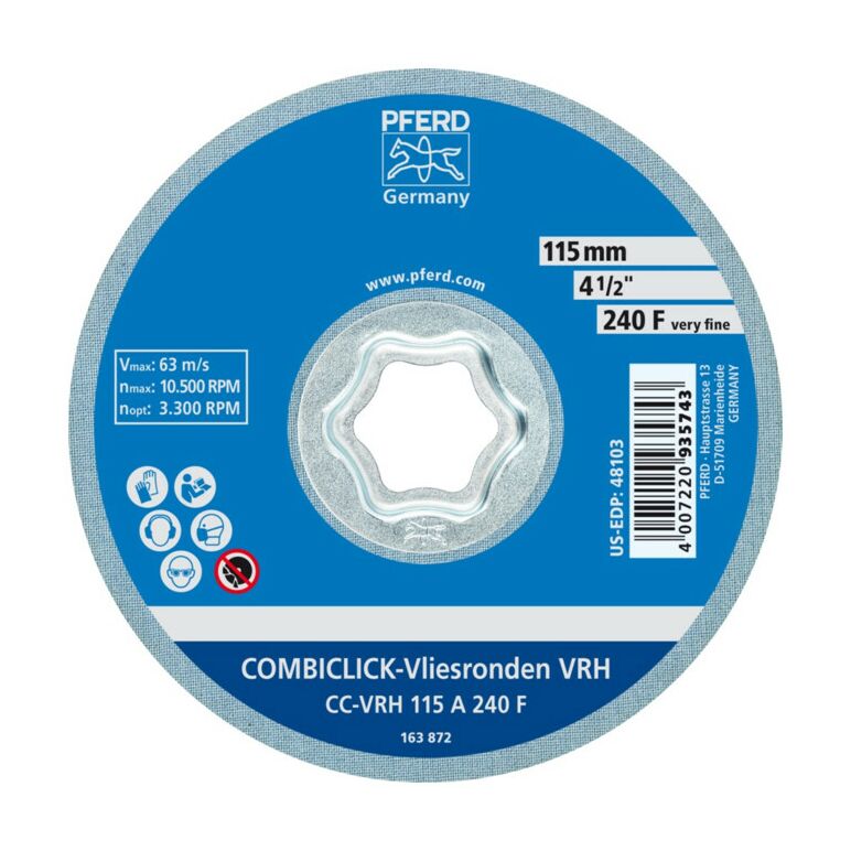 PFERD 42000061 COMBICLICK harte Vliesronde CC Ø 125mm A 180M zum Feinschliff & Finish für Winkelsc