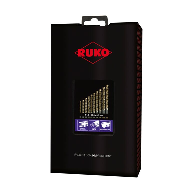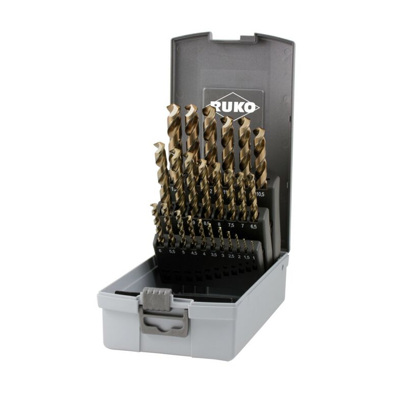 RUKO Spiralbohrersatz DIN 338 Typ UNI HSSE Co 5 in Kunststoffkassette (ABS) 25-teilig