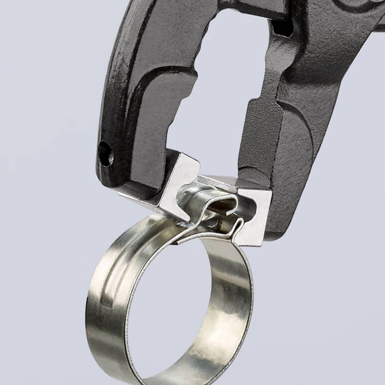 zum Öffnen und Schließen von Click-Schellen. Drehbare Greifeinsätze für die sichere Betätigung der Schellen in jeder Position. Gute Hebelübersetzung: die Schellen können einfach, ohne hohen Kraftaufwand sicher und leicht geöffnet und wieder geschlossen werden. Zum komfortablen Arbeiten z. B. an Kraftstoffschläuchen, Unterdruckleitungen und Ansaugstutzen. Zusatzfunktion: Schläuche schonend lösen durch gezahntes Greifmaul. Schlanker Kopf; geringe Kopfbreite, drehbare Greifeinsätze: ein ideales Werkzeug gerade unter beengten Verhältnissen.