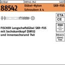 Artikel 88542 Dübel-Nylon SXR-FUS Schrauben A 4 FISCHER Langschaftdübel SXR-FUS mit Sechskantkopf (SW13) und ISR T40 - Abmessung: SXR 10x100 FUS VE=S (50 Stück)Weitere technische Eigenschaften:· Material: Schrauben A 4/Dübel-Nylon· Gruppencode 88542.942· Normart REYHER-Artikel 88542