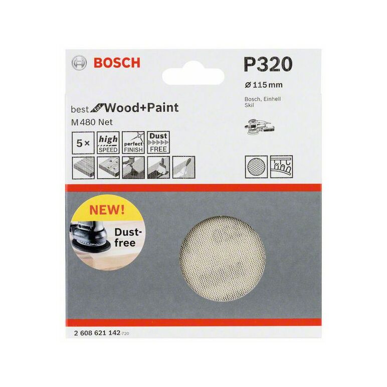 Bosch Schleifblatt M480 Net, Best for Wood and Paint, 115 mm, 320, 5er-Pack (2 608 621 142)