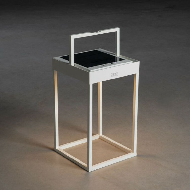 Konstsmide Portofino Outdoor-Effektlaterne Solar, USB 2700K, 3000K Ein, Aus, Abenddämmerung, Dämmerungsweiß, IP54 | Ausführung: Weiß | Material: Aluminium | IP-Schutzart: IP54 | Höhe: 30cm | Breite: 18,5 cm | Tiefe: 15,5 cm | Lampentyp: Integrierte LED | Inklusive Glühbirne: Ja
