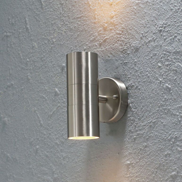 Konstsmide Modena Moderne Up-Down-Leuchte für den Außenbereich aus Edelstahl, IP44 | Ausführung: Edelstahl | Material: Edelstahl | IP-Schutzart: IP44 | Höhe: 17cm | Breite: 6cm | Tiefe: 9cm | Lampentyp: GU10 | Mitgelieferte Glühbirne: Nein
